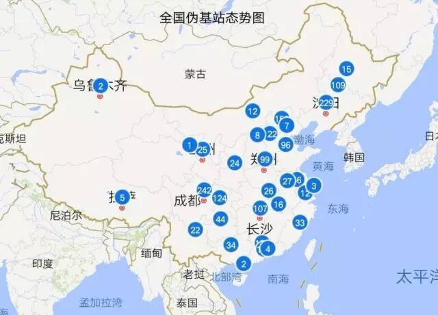 全国伪基站态势图20170222